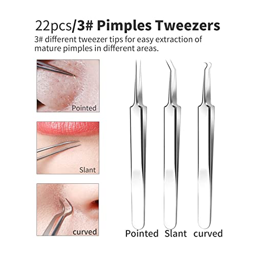 2024 Professional Pimple Popper Tool Kit – 22 PCS Blackhead Remover Tools for Acne and Zit Popping Comedone Extractor with Magnifying Glass and Alcohol Pad