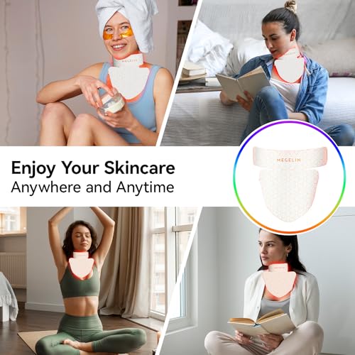 【Upgrade LED Face & Neck Mask】MEGELIN 7 colors light therapy mask for face & Neck is made of flexible silicone material.