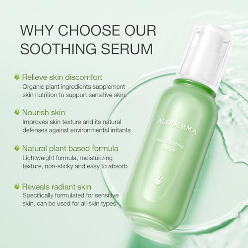 Specification: Aloderma Soothing Face Serum with 65% Organic Aloe Vera – Natural Aloe Serum for Sensitive Skin with Beta-Glucan & Argininem Skin Calming, Nourishing & Revitalizing Facial Serum for Clean Skin, 1.7oz