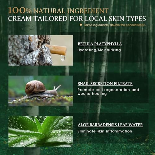 Natural and Powerful Ingredients: Our moisturizer face cream formula includes birch sap, which brightens and hydrates the skin, reducing dark spots, and snail secretion filtrate, which repairs and smooths the skin. Aloe barbadensis leaf water soothes and calms the skin, reducing redness, while niacinamide minimizes excess oil, tightens pores, and enhances skin radiance.