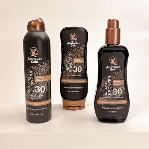 Specification: Australian Gold Spray Gel Sunscreen with Instant Bronzer SPF 30, 8 Ounce | Moisturize & Hydrate Skin | Broad Spectrum | Water Resistant | Non-Greasy | Oxybenzone Free | Cruelty Free