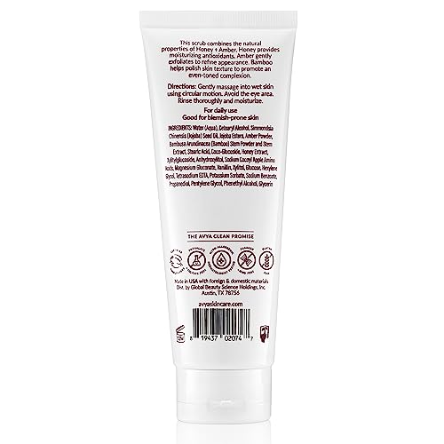 AVYA Honey + Amber Exfoliating Scrub (4 fl oz) – Deep Cleansing with Honey’s Antioxidant Power and Bamboo for Refined Texture and Intense Moisturization