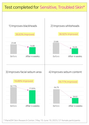 [DERMATOLOGICALLY TESTED] Improves blackheads by 36.63%, whiteheads by 36.92%, sebum control by 39.77%, instant moisturization by 15.4%, skin texture by 14.8%