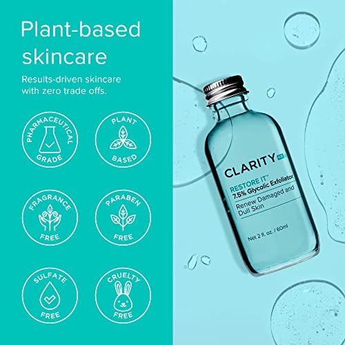 ClarityRx Restore It 7.5% Glycolic Acid Face Serum, Plant Based Exfoliating Treatment, Paraben Free, Natural Skin Care (2 fl oz)