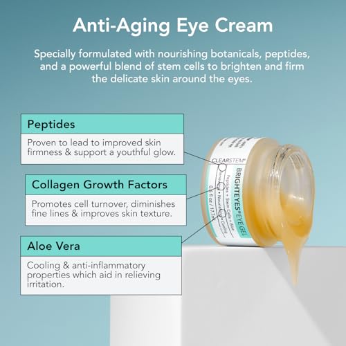 CLEARSTEM – BRIGHTEYES – Nourishing Anti-Aging Eye Gel – For Puffy Eyes, Crow’s Feet, & Dark Circles – Made with Collagen, Stem Cells, Peptides & Aloe Vera – Vegan – Gluten Free – Men & Women – 0.6 oz