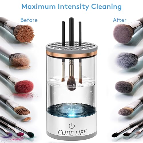 💖Thorough and Gentle Cleaning: The CUBE LIFE Electric Makeup Brush Cleaner utilizes state-of-the-art technology to ensure a thorough and gentle cleansing of your makeup brushes. Its powerful yet gentle motor rotates and cleans each bristle, effectively removing makeup residue, oil, and impurities.