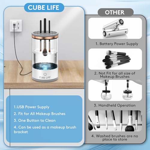 💖Easy Operation: The CUBE LIFE Brush Cleaner is powered by USB, making the operation process simple and convenient. You can easily turn it off or on, and it is easy to operate and carry. Whether you are traveling or just enjoying some leisure time, you can take it with you wherever you go.
