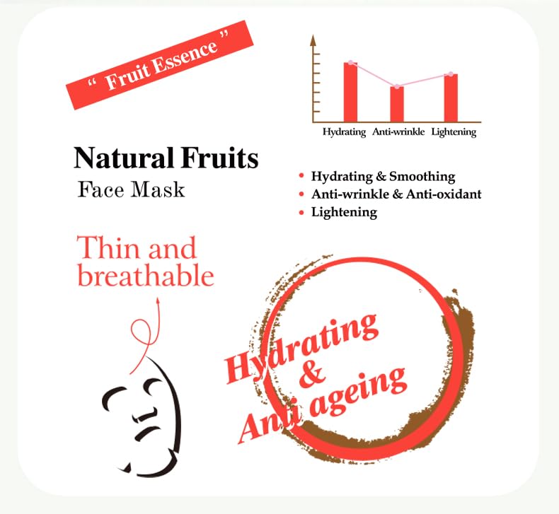 【NATURAL FACIAL SKINCARE PRODUCTS】: The premium facial mask for woman skincare with natural material extracted from fruit, and the silky smooth and soft thick texture to deliver active ingredients deeper into the skin for greater hydration, refreshment, and higher efficacy & adhesion; they stop evaporation & lock in moisture so the skin absorbs every drop. Skin will quickly feel brighter, tighter, more youthful.