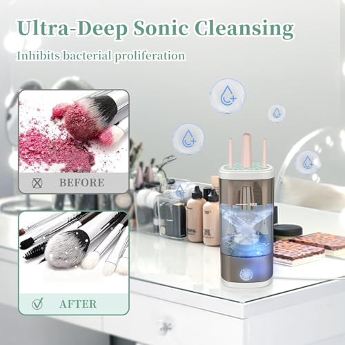 Professional Cleaning, Protecting your skin: Designed for the perfectionist in you, the Tpsofy electric makeup brush cleaner employs advanced cleaning technology. Its 7000RPM powerful motor delves deep into brush bristles, eliminating makeup residue, oils, effectively preventing skin issues. Each application ensures a fresh and natural look for your makeup.
