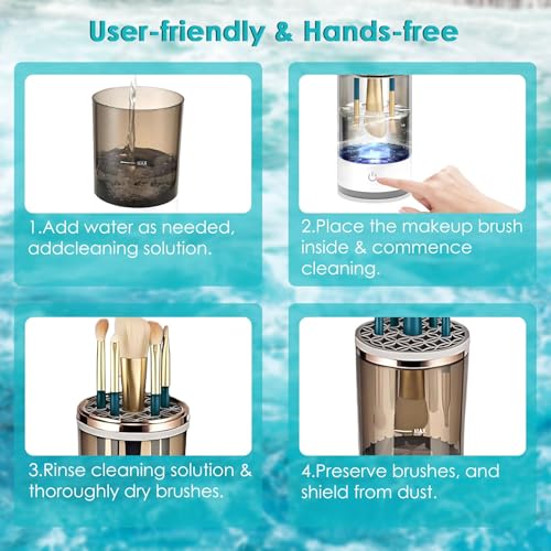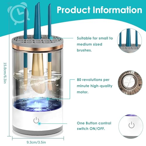 【Cosmetic Brush Cleaner Easy to Use】The automatic cleaning and makeup brush is powered by USB, and the operation process is simple. Just put the brush into the machine, add some water and cleaning agent, button control switch,This machine will automatically clean your brush, and after cleaning, it can be inverted and air dried.