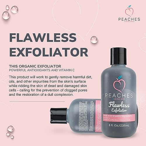 Facial Exfoliator – Deeply cleanse and exfoliate your skin by using the Peaches’ Exfoliating Face Scrub. This 8 oz bottle of face exfoliant is created from ingredients that allow oxygenation and cleansing of all skin types.