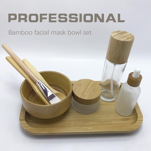 Specification: Face Mask Mixing Bowl Set Bamboo,8 Pcs Diy Facemask Mixing Tool Kit With Facial Mask Bowl,Spatula,Spoon,Brush,Empty Refilable Lotion Pump Bottle,Cream Jar and Dropper Bottle and Tray