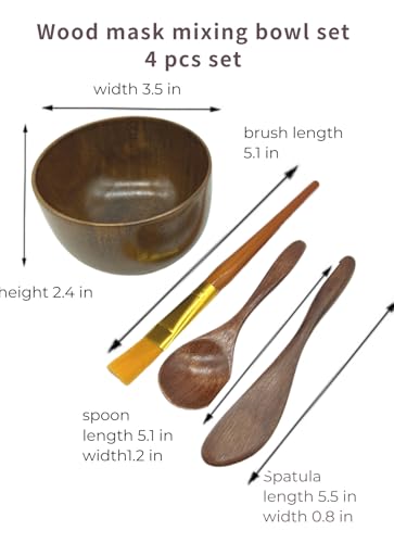 Specification: Face Mask Mixing Bowl Set Brown Wood,4 Pack Diy Facial Tools For Skin Care,Facemask Mixing Tool Kit With Facial Mask Bowl,Spatula,Spoon,Brush Applicator,Facial Esthetician Supplies