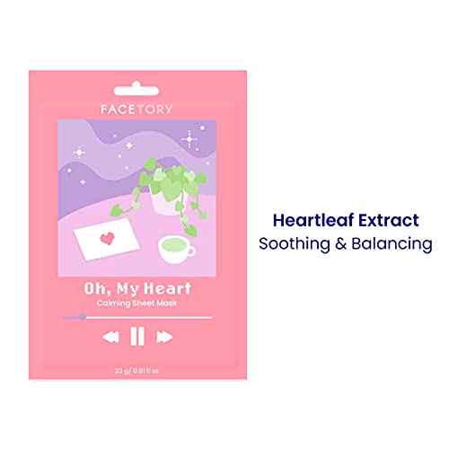 FACETORY K Beauty Face Mask Skin Care – CALMING Sheet Mask for ACNE-PRONE Skin with Heartleaf Extract | Calms Redness Smoothes Texture (5 Pack)