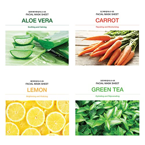 It is easy to select and purchase as it is composed of complex packaging. ; We made Korean facial sheet masks in complex packaging including single packaging, so it is easy for you to choose and purchase. You will find it easy to find your favorite MASK first with the mix packaging of ALOE VERA MASK, GREEN TEA MASK, CARROT MASK, and LEMON MASK. If you choose your favorite MASK and repurchase it, it will be very helpful for your face skin care with 1 MASK a day