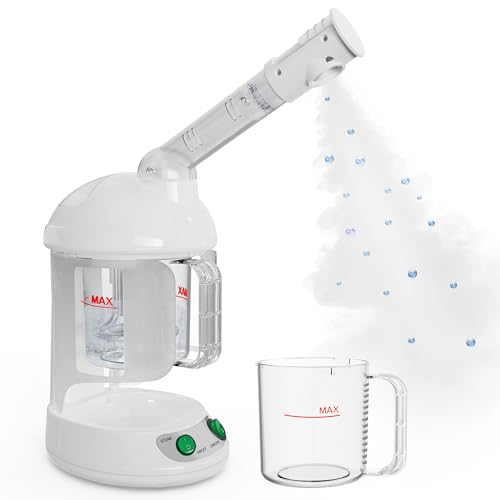 Facial Steamer, Nano Ionic Warm Mist Face Steamer with Detachable Cleanable Water Tank, Portable Face Humidifier with 360° Rotating Arm