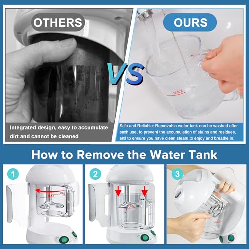 【Detachable Water Tank】: Unlike others, 4 In Love facial steamer has removable water tank can be washed, cleaned and dried after each use, to prevent the accumulation of stains, residues or mildew, and to ensure you have clean steam to enjoy and breathe in.