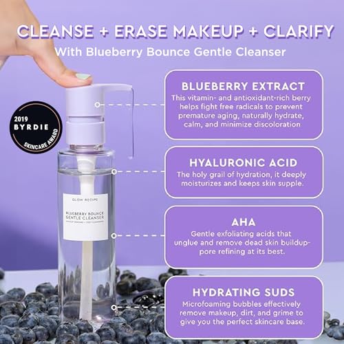 Specification: Glow Recipe Blueberry Bounce Gentle Face Cleanser – 3-in-1 Foaming Double Cleanser, Makeup Remover Face Wash & Clarifying Mask – Hydrating Hyaluronic Acid, Blueberry Extract & Exfoliating AHA (160ml)