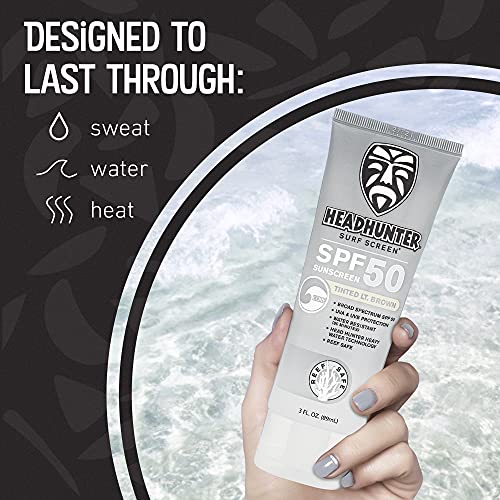 Headhunter Heavy Duty Reef Safe Sunscreen SPF 50 for Surfing – Natural Mineral Sunscreen Face Cream – Broad Spectrum UVA/UVB Safe, Skin Defense Against Damage – Tinted Light Brown Formula (1 Pack)