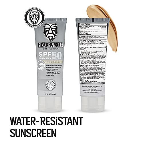 Specification: Headhunter Heavy Duty Reef Safe Sunscreen SPF 50 for Surfing – Natural Mineral Sunscreen Face Cream – Broad Spectrum UVA/UVB Safe, Skin Defense Against Damage – Tinted Light Brown Formula (1 Pack)