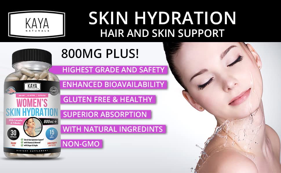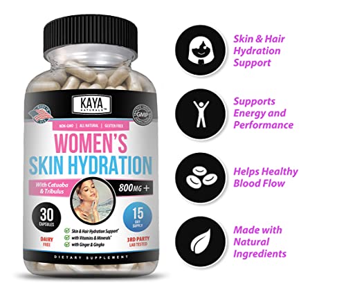 Kaya Naturals Skin Hydration Vitamins – Female Pills – Skin Enhancer Capsules – Skin Hydration Booster for Women – Promotes Increased Energy, Mood & Stamina – Reduction in Dryness – 30 Veggie Capsules