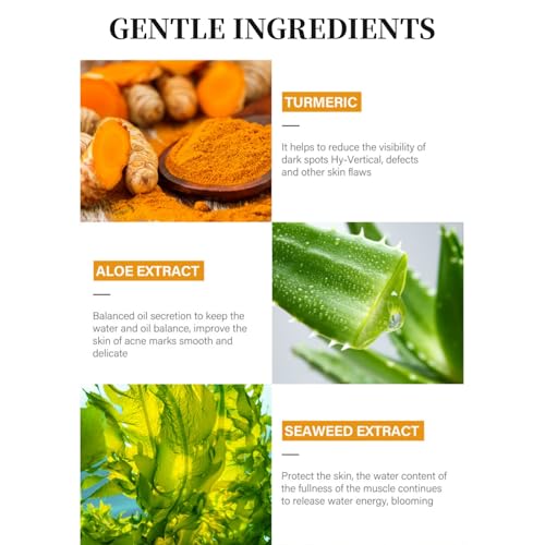 correct skin tone, reduce melanin production, and prevent the regeneration of spots. 【Glossy Glass Skin】Turmeric essence can brighten the skin tone and create smooth and bright skin. The sheer formula absorbs quickly into skin, leaving skin feeling soft and smooth.