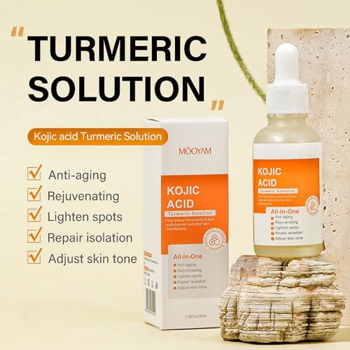 Kojic Acid Turmeric Serum, Hydrating Brightening Serum Dark Spots, Anti Wrinkle Fine Lines Dark Spot Corrector Nourishing Firming Daily Skin Care Serum, Hydrate Dull & Dry Skin 1.05 OZ