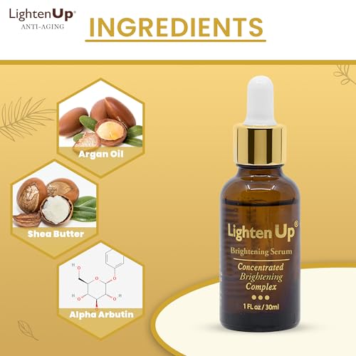 Specification: LightenUp, Skin brightening Serum | 1 Fl oz / 30 ml | for Face, Armpits, Hands, Knees and Body | with Argan Oil and Shea Butter