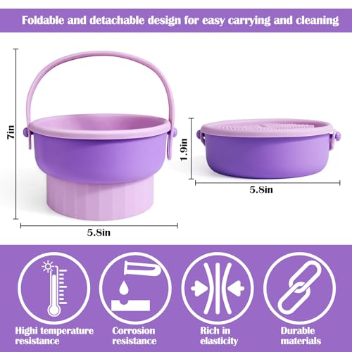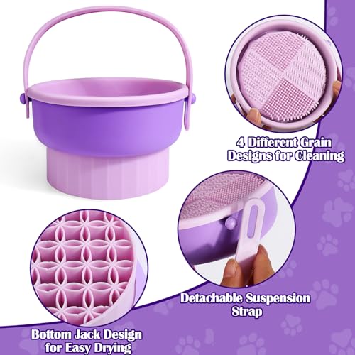Specification: Makeup Brush Cleaning Bowl,3 in 1 Silicone Cosmetic Brush Cleaner Bowl with Drying Holder Brush Cleaning Scrubber Tool Fit For All Size Makeup Brush