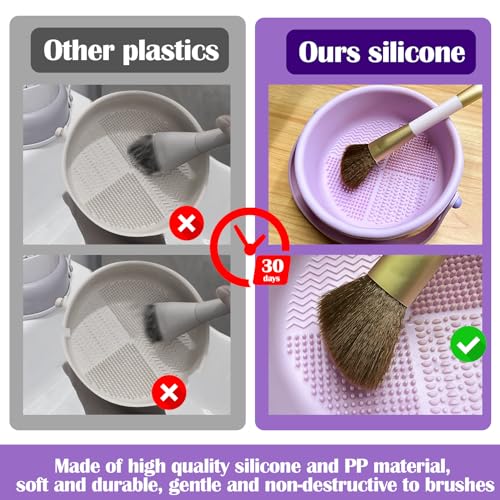 Soft and Durable Material – Ditch those low-quality plastics that are prone to breakage and contain harmful substances, and choose our makeup brush cleaning bowl made of high-quality silicone and healthy PP materials, which are soft and tough, not only gentle to your precious makeup tools in your hands, but also long-lasting, reducing the waste of money caused by frequent replacement.