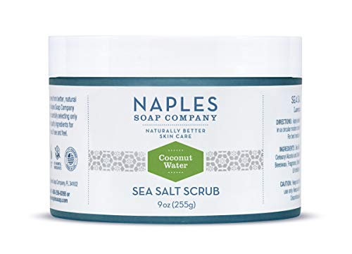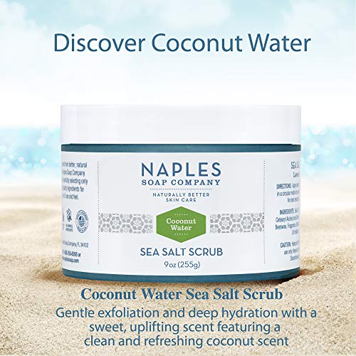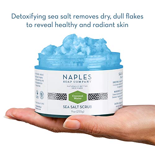 Naples Soap Natural Sea Salt Scrub – Exfoliating and Moisturizing Skin Care Removes Dry, Dull Flakes Revealing Radiant Skin – No Harmful Ingredients – Coconut Water, 9oz