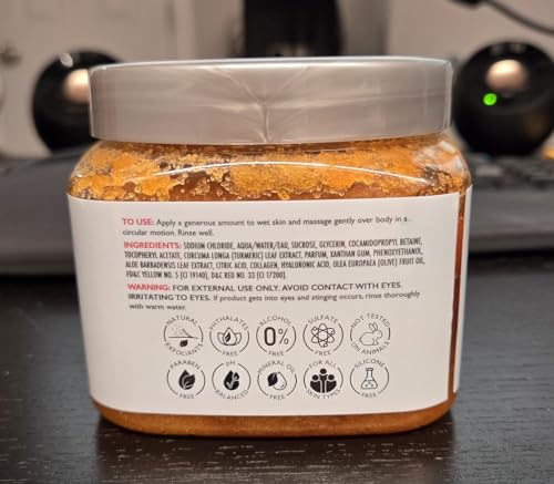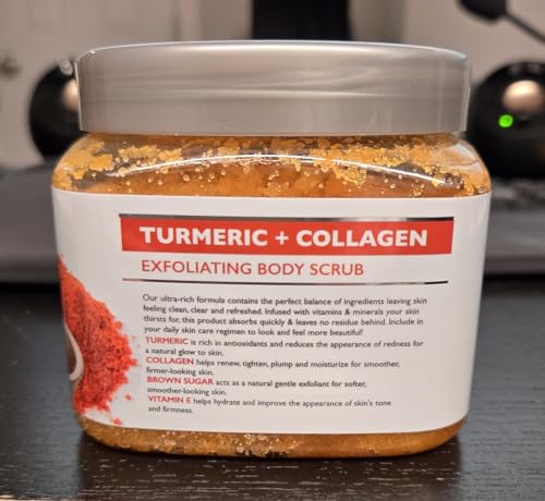 Specification: Spascriptions Turmeric + Collagen Exfoliating Body Scrub, 21 oz, Ultra Hydrating and Exfoliating Scrub for Nourishing Essential Body Care