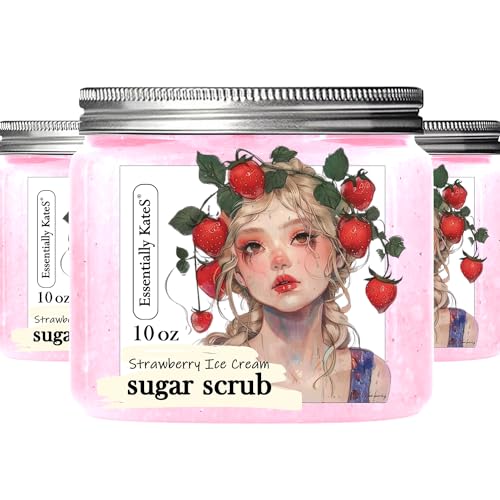 Specification: Strawberry Ice Cream Sugar Scrub 10 oz – Pack of 3, Natural Strawberry Formula – Deliciously Fragrant, Refreshing, and Skin-Polishing Care – The Best Gift to Friends