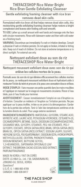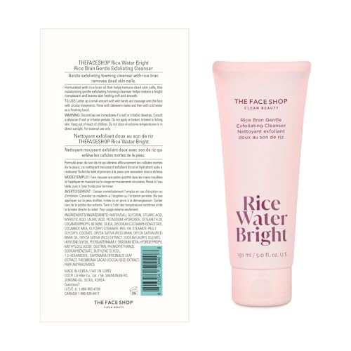 The Face Shop Rice Water Bright Rice Bran Gentle Exfoliating Cleanser – Hydrating, Moisturizing & Brightening Face Cleanser – Vegan Exfoliating Face Wash Face Scrub – Korean Skin Care Face Exfoliator