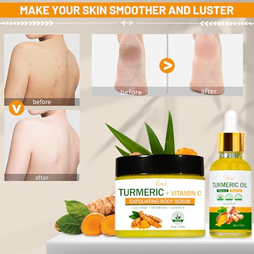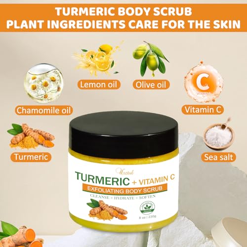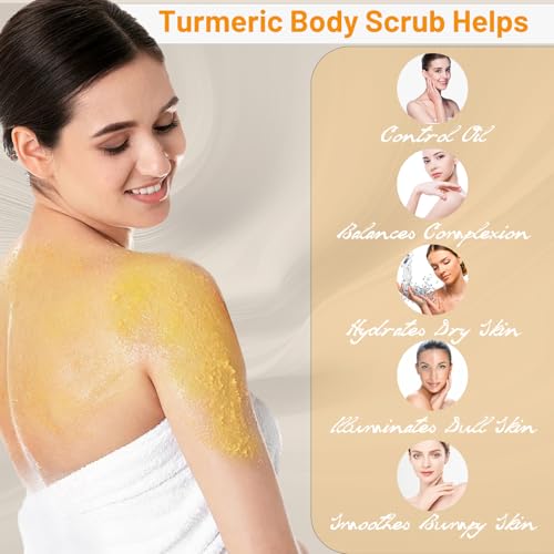 Turmeric Body Scrub Turmeric Oil, Natural Organic Hydrating Exfoliating Scrub For Body, Face, Hand, Foot, Skincare Bikini Private Area Smooth & Soften Exfoliator, Suitable for All Skin Types