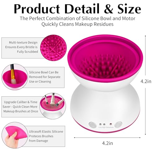 CLEAN AND DRY FUNCTION UPGRADE: New upgrade, the old version of the fixed gear upgraded to high and low gear, and different makeup brush sizes use different gears for cleaning and drying. Make sure that the makeup brush is clean and in place, and use the dewatering function to dehydrate and dry the water on the makeup brush, keep the makeup brush clean and sanitary, and extend the service life of the makeup brush.